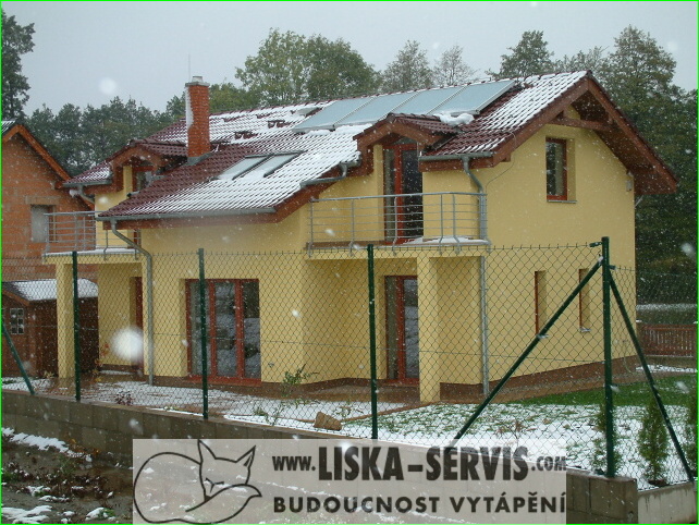 prioritu provozu má samozřejmě topení dřevem v interiérovém kotli Verner a sluneční vakuové kolektory REGULUS s velkým výkonem i v podmračném počasí a i v zimě